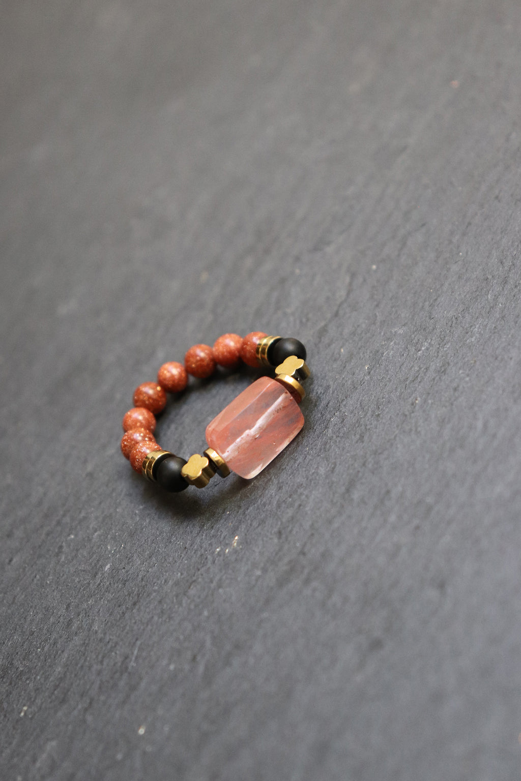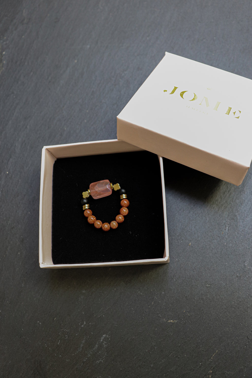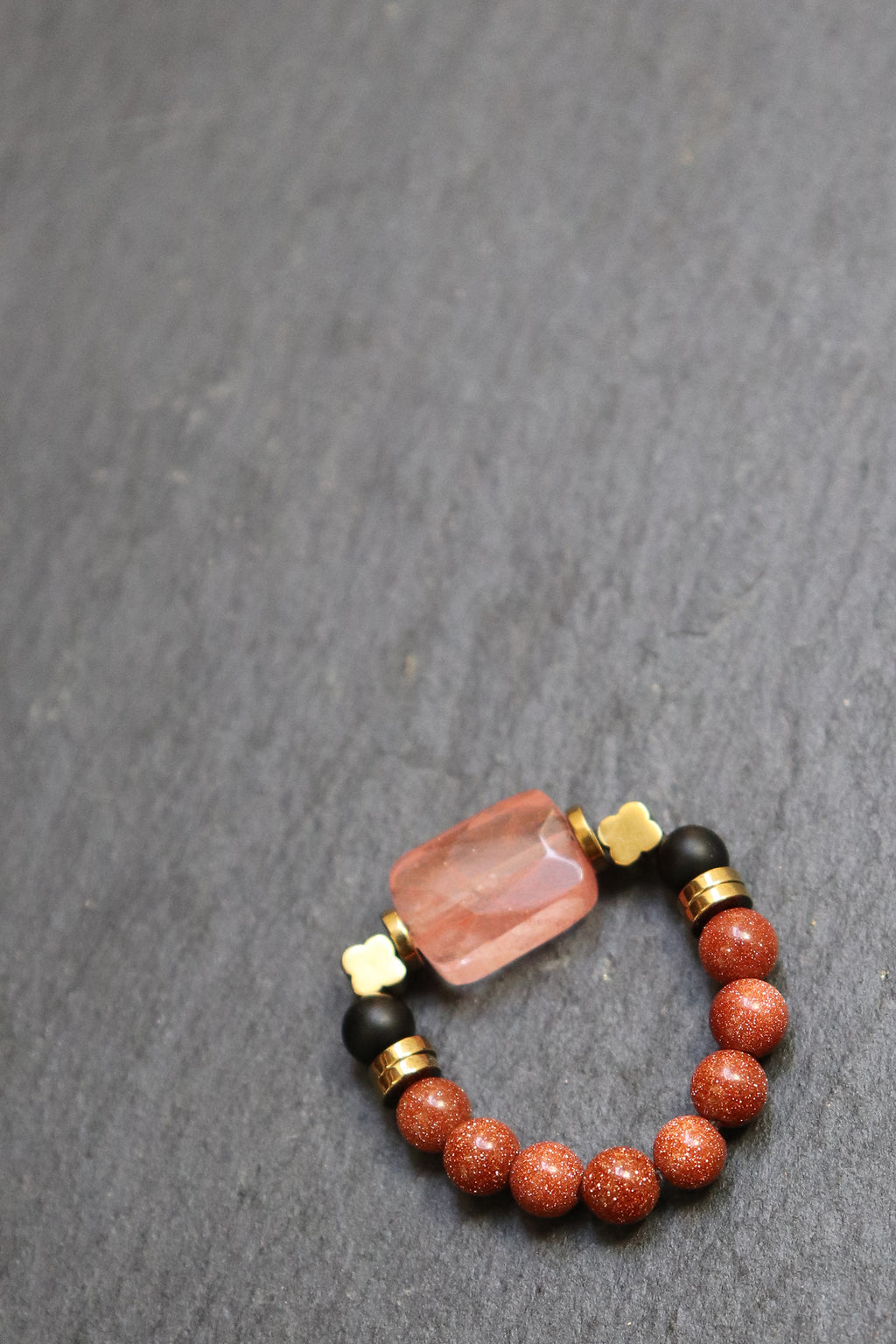 Die Zutaten, die wir für dich gewählt haben, sind: Goldfluss, Erdbeerquarz, Hämatit, Onyx.