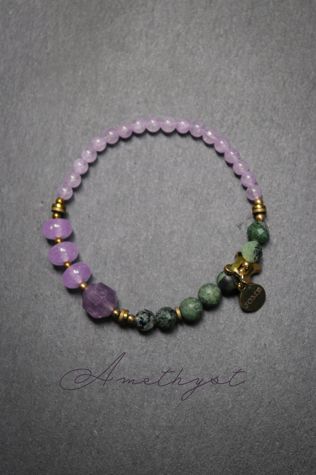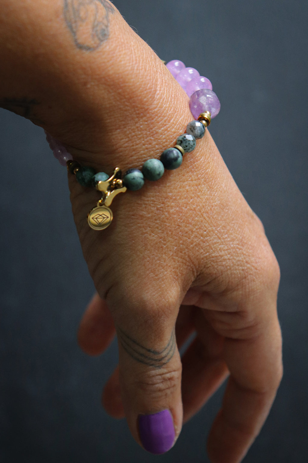 Lass dich verzaubern von deinem neuen Edelsteinbändchen. Lavendel Amethyst schenkt dir sanfte Ruhe, Amethyst Hämatit bringt dir stillen Schutz, Zebra Jaspis Green schenkt dir Balance und Epidotzoisit kleine Energiefunken. Ein zarter Begleiter für jeden Tag, der dich liebevoll durch deinen Alltag begleitet.
